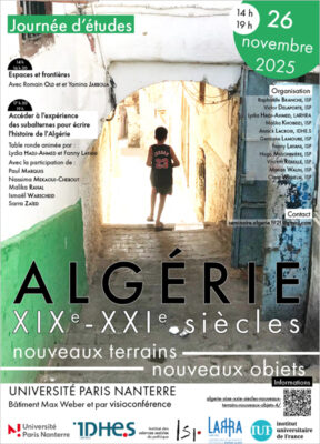 - Algérie, XIXe-XXIe siècles. Nouveaux terrains, nouveaux objets26 novembre 2025Journée d'étude co-organisée par l'IDHE.S et l'ISP. Lire la suite
