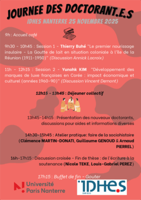 - L’Olympiade culturelle en Île-de-France et son héritage27 novembre 2025Séminaire co-organisé par l'IDHE.S et le CETAPS (Université de Rouen) Lire la suite