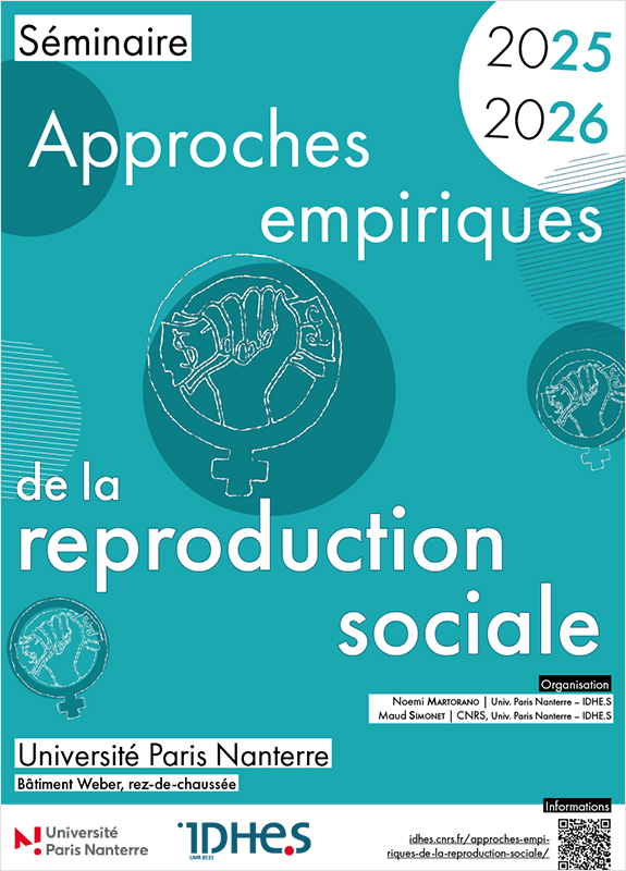 - Approches empiriques de la reproduction sociale13 février 2026 - 3 juillet 2026Séminaire organisé par l'IDHE.S. Lire la suite