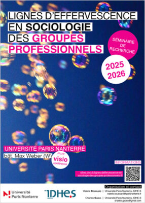 - Lignes d’effervescence en sociologie des groupes professionnels5 décembre 2025 - 17 avril 2026Séminaire organisé par l'IDHE.S Lire la suite