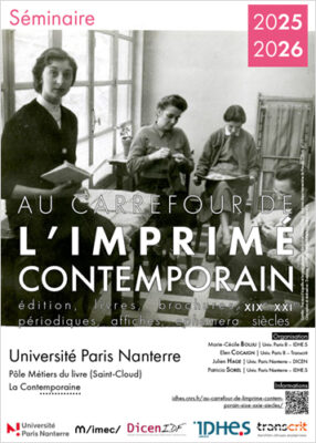 - Au carrefour de l’imprimé contemporain, XIXe-XXIe siècles15 octobre 2025 - 1 avril 2026Séminaire co-organisé par l'IDHE.S, DICEN et Transcrit Lire la suite