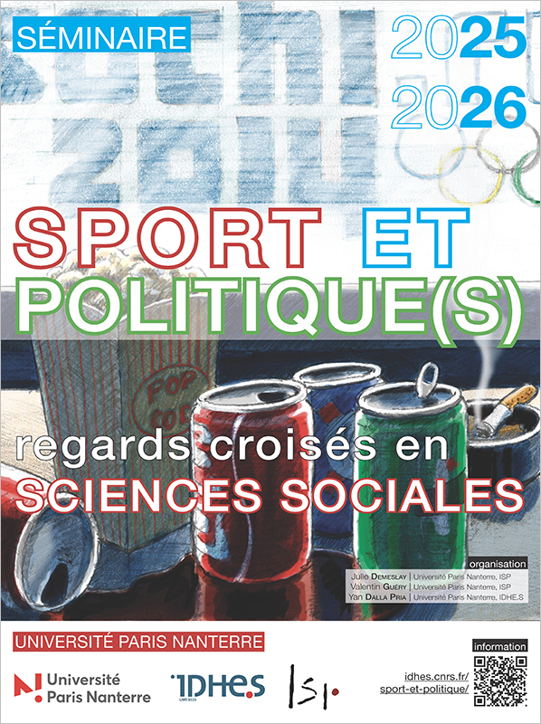 Comprendre la vie des groupes et des institutions dans la recherche doctorale6 février 2026 - 5 juin 2026 - Sport et politique(s)6 février 2026 - 12 juin 2026Séminaire co-organisé par l'IDHE.S et l'ISP. Lire la suite